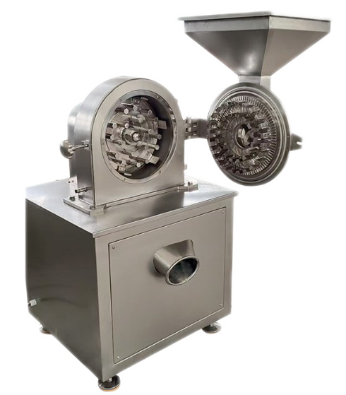 本機采用了風輪式高速旋轉刀,定刀進行沖擊、剪切研磨,粉碎時機腔內產生了強力的氣流,把粉碎室的熱量和成品一起從篩網流出,粒度大小通過更換篩網獲得。機殼內壁全部經機加工達到表面平滑,改變了前機型內壁粗糙、積粉現象,使藥品、食品、化工等生產全部達“GMP”標準要求整機全部用不銹鋼材料制造,該機已達到國際先進水平。